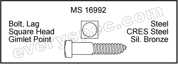 MS16992F, MILITARY STANDARD, SCREW, LAG (BOLT), HEX HEAD, GIMLET POINT (20 DEC 1988)
